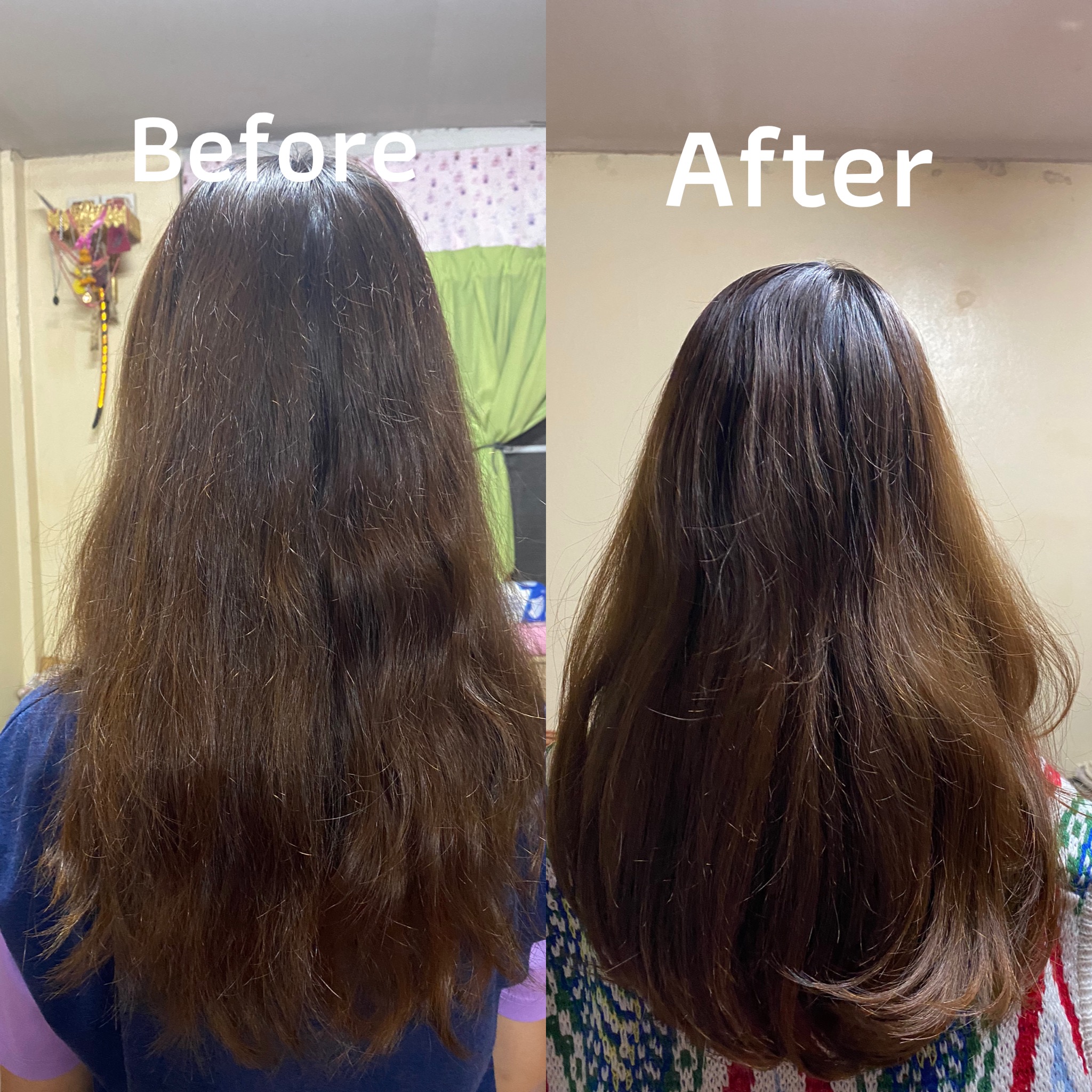 อันนี้เป็นภาพเทียบก่อนและหลังใช้แชมพูและทรีสเม้น